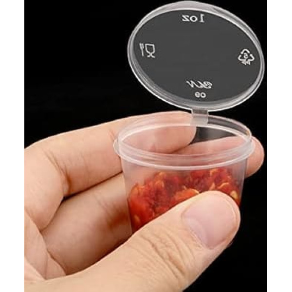 LIGHTWEIGHT & DURABLE - Made of food grade and BPA free plastic, these 1oz round sauce pots are very lightweight and sturdy enough to hold hot or cold food, so you can use the 1 oz plastic pots with lids without any worries. Save Money & Time - One set includes 200 mini sauce pots with lids, each can hold 1 ounce of food. There are so many quantities to meet your different needs without wasting time on frequent replacements. EASY TO USE AND CLEAN - The one-piece design of the lid and clear round hinge pots provides a good seal and the smooth body does not easily trap dirt, making these hinged lids easy to clean with water and mild soap. Convenience - High transparency allows you to see at a glance what's inside sauce pots with hinged lids are ideal for serving ketchup, chutney, mayonnaise or samples etc for meal prep, snack or distribution services for home, fast food restaurants, or other occasions. AFTER SALE SERVICE - If there is any problem with round sauce pots, please feel free to contact us. We will solve your problem as soon as possible. Your satisfaction is our greatest joy! › See more product details; Product description About Us ZEONHEI is committed to providing its customers with products that are closely related to daily life. Our main goal is to offer you better products that make your life more convenient and interesting. More about the benefits of this sauce pot: Made of durable PP material, the box body is smooth without burr, highly transparent clear. The 1oz round food containers are an ideal size for sauces or spreads. These hinged lid sauce pots can be used for a range of different foods. Perfect for sauces, pudding, diced fruits, etc. These sauce pots are fantastic for crafters to sort beads, crystals, glitter etc. They have a secure lid. They do not leak and the lid closes securely. Product features: Material: PP Colour: transparent. Package includes: 200 x Small Sauce Pots; Product description About Us ZEONHEI is committed to providing its customers with products that are closely related to daily life. Our main goal is to offer you better products that make your life more convenient and interesting. More about the benefits of this sauce pot: Made of durable PP material, the box body is smooth without burr, highly transparent clear. The 1oz round food containers are an ideal size for sauces or spreads. These hinged lid sauce pots can be used for a range of different foods. Perfect for sauces, pudding, diced fruits, etc. These sauce pots are fantastic for crafters to sort beads, crystals, glitter etc. They have a secure lid. They do not leak and the lid closes securely. Product features: Material: PP Colour: transparent. Package includes: 200 x Small Sauce Pots; About Us ZEONHEI is committed to providing its customers with products that are closely related to daily life. Our main goal is to offer you better products that make your life more convenient and interesting. More about the benefits of this sauce pot: Made of durable PP material, the box body is smooth without burr, highly transparent clear. The 1oz round food containers are an ideal size for sauces or spreads. These hinged lid sauce pots can be used for a range of different foods. Perfect for sauces, pudding, diced fruits, etc. These sauce pots are fantastic for crafters to sort beads, crystals, glitter etc. They have a secure lid. They do not leak and the lid closes securely. Product features: Material: PP Colour: transparent. Package includes: 200 x Small Sauce Pots