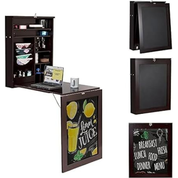 Wall cabinet and folding table in 1: As a wall cabinet, it offers plenty of space for sorting and displaying items with plenty of compartments and 2 repositionable shelves. When unfolded, there is a 72 x 60 cm table top, which can be used for office work as well as for eating or drinking coffee. Space-saving design: thanks to the folding function and wall mounting, this wall folding table is particularly space-saving. The front of the cabinet is equipped with a blackboard, including chalk and sponge so you can draw or write on the board. Easy wall mounting: This wall desk comes pre-assembled, you only need to attach it to the wall according to the instructions (English language not guaranteed). With robust metal connections, the table top can support a weight of up to 15 kg. Each shelf can hold up to 5 kg. Durable material: this bar table is made of high-quality MDF panels and is therefore stable, non-toxic, odourless, waterproof and durable. The hooks on the shelf and the latch on the top make it easy to use and fold the table. Fashionable appearance: whether as a folding table or as a wall cabinet, it impresses with a fresh and elegant look. This dining table blends into any decor. You can put it in your living room, bedroom, study or kitchen. › See more product details