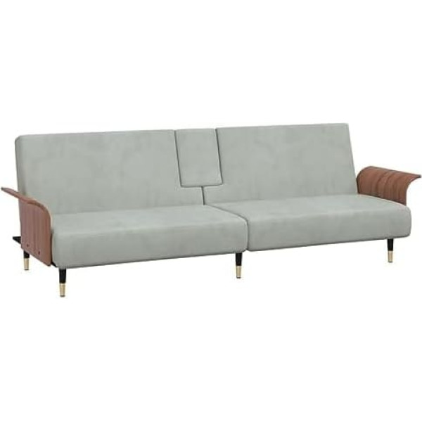 Vidaxl Sofa Bed with Drink Holders, Sofa with Adjustable Backrests, Couch for Living Room, Sofa Bed Metal Feet, Light Grey Velvet