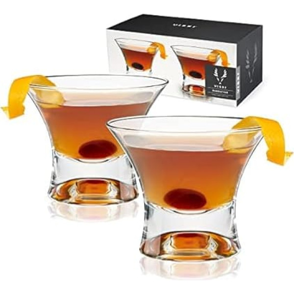 Manhattan crystal glasses without stem: these beautiful cocktail glasses are crystal clear and designed with a precise cut. These elegant and modern glasses look good on any bar cart and add subtle elegance to any drink. PERFECT FOR SERVED COCKTAILS – This classic Manhattan set is perfect for a Manhattan, Martini or any other served drink. Mix your favourite drink and serve it in this impressive glass - so you can enjoy your cocktail the way it should be. An iconic glass, reinvented – the sleek, spherical curves and heavy base of this stemless cocktail bowl bring your favourite drink back to the splendor of the 60s. The flared rim enhances the aroma of your drink and gives this glass an unused grip. Impress friends and guests with elegant glasses: give these unique Manhattan glasses to craft cocktail lovers, Father's Day or wedding. Or you can combine these eye-catchers for yourself with a shaker and your favourite whisky! Distinctive VISKI crystal design – Viski stands symbolically for the high-end drink experience. The brand embodies striking design, from the slim champagne flute to the bulbous red wine glass. Each Viski collection represents its own timeless style. › See more product details