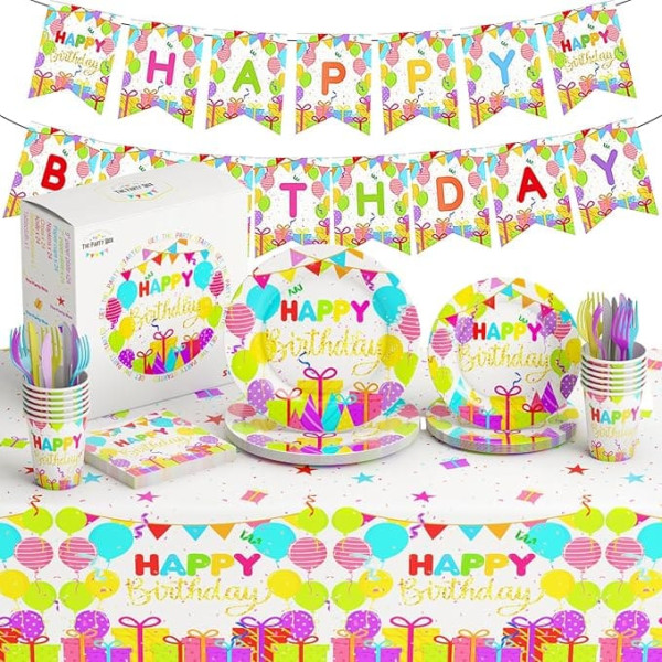 Birthday paper plates: Our Happy Birthday plates and napkins set is carefully designed by several foreign designers and provides a stylish and festive touch to your birthday party decorations. Durable materials: made of high-quality 350 g raw paper, our paper plates and napkins are robust and durable and provide reliable support for all your party needs without being easily damaged. Party tableware children's birthday; includes 24-7 inch plates, 24-9 inch plates, 24 napkins, 24 paper cups, colourful forks and knives, a set of banners and a tablecloth that offers everything you need for a stress-free party decor. Versatile size: with 7 inch and 9 inch plate options as well as a 180,108 tablecloth, our birthday party supplies are ideal for different occasions and can accommodate most households in North America and the region of the European Union. ️ SATISFACTION GUARANTEE: We stand behind the quality of our products. If you have any problems or have any questions, please contact us. We offer a 30-day unconditional return or exchange policy for your safety. › See more product details
