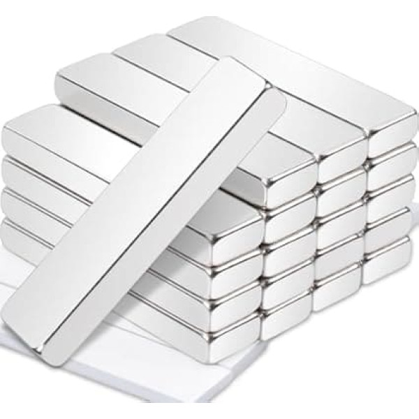 MAGXCENE Pack of 20 Magnets Strong 40 x 10 x 5 mm Strong Magnets Rectangular Magnets Self-Adhesive Strong Rare Earth Magnets Neodymium Magnets Extra Strong Adhesive Magnets for Fridge, Kitchens,