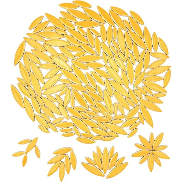 Features: ceramic mosaics, the surface is smooth, does not hurt your hands, uniform thickness, brighter and more beautiful in a tighter distance; The color of these mosaics will never lose The leaf mosaic tiles 3 sizes: large size: 4.9 x 1.3 x 0.4 cm; medium size: 3.6 x 1.1 x 0.4 cm; small size: 2.4 x 0.8 x 0.4 cm; approx. 170 pieces mosaic tiles, random color and size in opp bag Multiple usages: use them to decorate picture frames, cups, flower pots, fish tanks, ceramics, vases, stepping stones and more DIY mosaic art and crafts Note: the back of the particles is not self-adhesive, you need to buy them yourself or prepare glue for pasting (white latex, alcohol glue, neutral glass glue, etc.) Reminder: the product has small particles and is not suitable for children under three years. Children over three years must be accompanied by parents or adults. › See more product details; Product description The leaf mosaic tiles 3 sizes: large size: 4.9 x 1.3 x 0.4 cm; medium size: 3.6 x 1.1 x 0.4 cm; small size: 2.4 x 0.8 x 0.4 cm; approx. 170 pieces mosaic tiles, random color and size in opp bag; Product description The leaf mosaic tiles 3 sizes: large size: 4.9 x 1.3 x 0.4 cm; medium size: 3.6 x 1.1 x 0.4 cm; small size: 2.4 x 0.8 x 0.4 cm; approx. 170 pieces mosaic tiles, random color and size in opp bag; The leaf mosaic tiles 3 sizes: large size: 4.9 x 1.3 x 0.4 cm; medium size: 3.6 x 1.1 x 0.4 cm; small size: 2.4 x 0.8 x 0.4 cm; approx. 170 pieces mosaic tiles, random color and size in opp bag