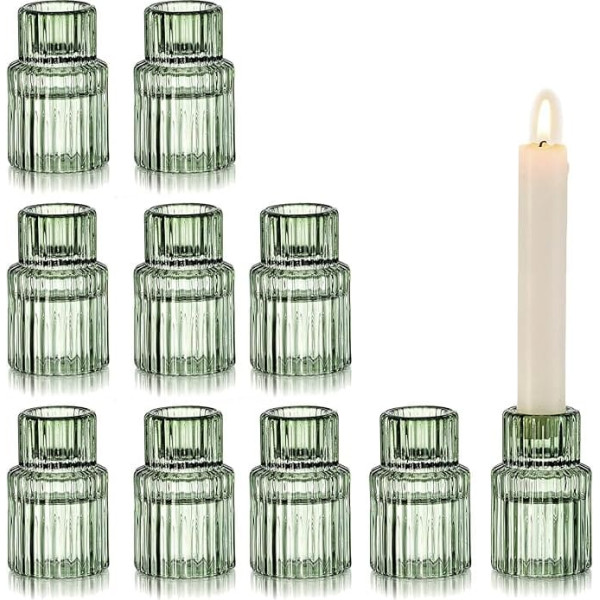 Glasseam Candle Holder Glass Candle Holder Taper Candles: Green Candle Holder Taper Candles Set of 10 Taper Candle Holders Glass Candle Holder Christmas for Table Decoration Candle Holder Taper Candle