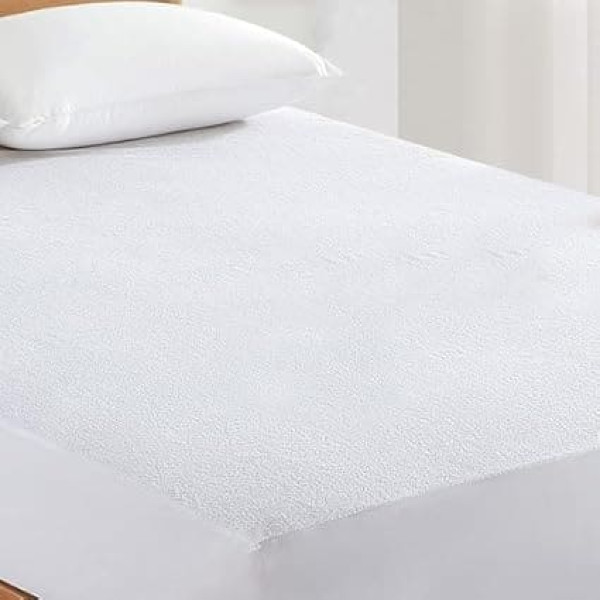 IDEAL FIT FOR ANY BED SIZE This mattress protector is designed for Single (91 x 190 cm), Double (137 x 190 cm), King (152 x 200 cm) and Super King (180 x 200 cm), with the ability to stretch up to 30 cm deep. It stays securely in place all night and ensures a cozy and comfortable sleep. Waterproof Protection Our mattress protector features a waterproof barrier that prevents liquid from seeping through and keeping your mattress clean and dry. Perfect for protecting against spills, accidents and daily wear and tear, ensuring your mattress lasts longer. FITTED SHEET STYLE Our mattress protector comes in a fitted sheet style, making it easy to put on and take off. The elastic edges ensure a snug fit on mattresses of all sizes, preventing slipping or bunching during the night for an undisturbed sleep. SOFT TERRY TOWELING FINISH Enjoy the comfort of a soft terry surface on our mattress protector. Made of polyester fabric, it feels gentle against the skin while adding an extra layer of coziness. It is also easy to clean and maintain, providing long lasting comfort and protection. Noiseless & Quiet Experience a peaceful sleep with our silent mattress protector. Made of high quality materials, it ensures no crackling or rustling sounds, allowing you to move freely without interference. Enjoy uninterrupted rest with protection that stays calm all night. › See more product details; Product description Protect your mattress from spills, stains and accidents with this waterproof mattress protector. Fits Single, Double, King and Super King It features a hypoallergenic fitted sheet that creates a barrier against moisture, dust mites and other allergens. Made of breathable and soft fabric, allows air to circulate and keeps your mattress dry and fresh. The midnight color adds a touch of elegance to your bedroom. This protector is easy to care for and can be machine washed and dried to ensure long-lasting protection for your mattress investment. Stay comfortable and worry-free with this essential bedding accessory.; Product description Protect your mattress from spills, stains and accidents with this waterproof mattress protector. Fits Single, Double, King and Super King It features a hypoallergenic fitted sheet that creates a barrier against moisture, dust mites and other allergens. Made of breathable and soft fabric, allows air to circulate and keeps your mattress dry and fresh. The midnight color adds a touch of elegance to your bedroom. This protector is easy to care for and can be machine washed and dried to ensure long-lasting protection for your mattress investment. Stay comfortable and worry-free with this essential bedding accessory.; Protect your mattress from spills, stains and accidents with this waterproof mattress protector. Fits Single, Double, King and Super King It features a hypoallergenic fitted sheet that creates a barrier against moisture, dust mites and other allergens. Made of breathable and soft fabric, allows air to circulate and keeps your mattress dry and fresh. The midnight color adds a touch of elegance to your bedroom. This protector is easy to care for and can be machine washed and dried to ensure long-lasting protection for your mattress investment. Stay comfortable and worry-free with this essential bedding accessory.