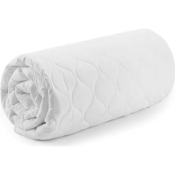 SIZE & FIT The quilted mattress protector measures 180 x 200 cm. The skirt is stretchy to fit a mattress with a depth of 30 cm (not waterproof). DURABILITY AND PROTECTION This mattress topper provides excellent durability and effectively protects your mattress. It has a filling of 90 GSM PERFECT CHOICE This mattress topper is the ideal choice. It provides comfort, softness, breathability and quality EXTRA SLEEPING COMFORT Super soft quilted cover with filling provides extra sleeping comfort and protection. Elasticated all around for secure hold of the mattress topper. WASHABLE & DRYER SAFE The cover is machine washable and can be tumble dried on low heat. Please do not bleach, easy care, natural drying. › See more product details