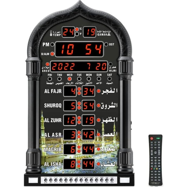 Hapihom Mosque Azan Prayer Islamic Wall Clock LCD Display Alarm Clock Ramadan Eid Gifts for Home Office Decoration (EU Plug) Black