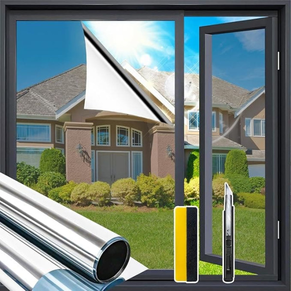 ❤️Provide the necessary accessories: update the package, add the necessary squeegee and a small cutter knife, so that installation is no longer troublesome. Watch the video before installation or read the instructions (English language not guaranteed) Protects against stranger eyes during the day: good privacy thanks to the mirror effect mirror film from the outside during the day, protects against the prying eyes of the neighbours, from the inside you can of course still see through as usual, but the view becomes slightly darker Not suitable as a privacy screen in the evening and cloudy day: At night, as the interior lighting is on, the interior light is stronger than the outdoor light, and the mirror effect is reflected inwards, which means that you can see everything from the outside again in the dark and on light, please remember to pull the curtains at night Sun protection film: keeps the heat out in strong sunlight and immerses the room in a pleasant light, blocks 99% of UV rays and 83% of infrared rays, keeps the heat inside in winter, which not only improves comfort, but also reduces the cost of air conditioning The mirror film can be attached inside or outside the window, but please note that the product tends to wrinkle when removing the transparent protective film. It is best to orient yourself to the corresponding assembly video or work as a couple › See more product details