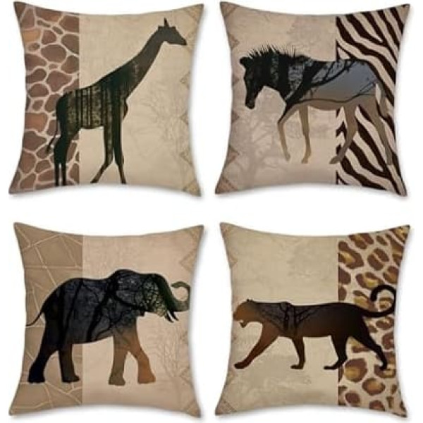 Material: Bonhause cushion covers are made of high-quality, durable and environmentally friendly polyester linen. VIBRANT ANIMAL DESIGN Make a wild statement in your home with these animal themed pillow covers that offer a variety of vibrant designs including giraffe, elephant, zebra, leopard and more! Size: each pillow cover measures 50 x 50 cm. Please allow for a deviation of 1 - 2 cm as this is a handmade product. (No cushion insert) Closure: Hidden zipper design on one side, easy to insert and remove the pillow case. Washing care: wash in cold water or machine washable, wash only gently, do not bleach, tumble dry low, iron low and it looks like new. › See more product details; Product description Specification: Material: polyester linen. Size: 50cm x 50cm Pattern: African Animals Package includes: 4 x cushion covers (no pillow insert). Features: VIBRANT ANIMAL DESIGN Make a wild statement in your home with these animal themed pillow covers that offer a variety of vibrant designs including giraffe, elephant, zebra, leopard and more! Closure: hidden zipper design, easy to use and remove the pillowcase. Great gift and decoration: can be used for indoor and outdoor use, perfect for decorating sofa, bench, chair, office, couch or bedroom, living room, car and home decor. Ideal for animal lovers, safari enthusiasts or anyone who wants to add a touch of exotic to their home decor. Don't miss the chance to transform your home with these stunning animal designs. Note: Washing care: machine wash separately separately, only gently cycle process, do not bleach, tumble dry, iron low. No cushion insert (inserts must be purchased separately for this product to be used properly). Please be reminded that due to lighting effects and monitor's brightness/contrast settings etc., the colour tone of the website photo and the actual item could be slightly different.; Product description Specification: Material: polyester linen. Size: 50cm x 50cm Pattern: African Animals Package includes: 4 x cushion covers (no pillow insert). Features: VIBRANT ANIMAL DESIGN Make a wild statement in your home with these animal themed pillow covers that offer a variety of vibrant designs including giraffe, elephant, zebra, leopard and more! Closure: hidden zipper design, easy to use and remove the pillowcase. Great gift and decoration: can be used for indoor and outdoor use, perfect for decorating sofa, bench, chair, office, couch or bedroom, living room, car and home decor. Ideal for animal lovers, safari enthusiasts or anyone who wants to add a touch of exotic to their home decor. Don't miss the chance to transform your home with these stunning animal designs. Note: Washing care: machine wash separately separately, only gently cycle process, do not bleach, tumble dry, iron low. No cushion insert (inserts must be purchased separately for this product to be used properly). Please be reminded that due to lighting effects and monitor's brightness/contrast settings etc., the colour tone of the website photo and the actual item could be slightly different.; Specification: Material: polyester linen. Size: 50cm x 50cm Pattern: African Animals Package includes: 4 x cushion covers (no pillow insert). Features: VIBRANT ANIMAL DESIGN Make a wild statement in your home with these animal themed pillow covers that offer a variety of vibrant designs including giraffe, elephant, zebra, leopard and more! Closure: hidden zipper design, easy to use and remove the pillowcase. Great gift and decoration: can be used for indoor and outdoor use, perfect for decorating sofa, bench, chair, office, couch or bedroom, living room, car and home decor. Ideal for animal lovers, safari enthusiasts or anyone who wants to add a touch of exotic to their home decor. Don't miss the chance to transform your home with these stunning animal designs. Note: Washing care: machine wash separately separately, only gently cycle process, do not bleach, tumble dry, iron low. No cushion insert (inserts must be purchased separately for this product to be used properly). Please be reminded that due to lighting effects and monitor's brightness/contrast settings etc., the colour tone of the website photo and the actual item could be slightly different.
