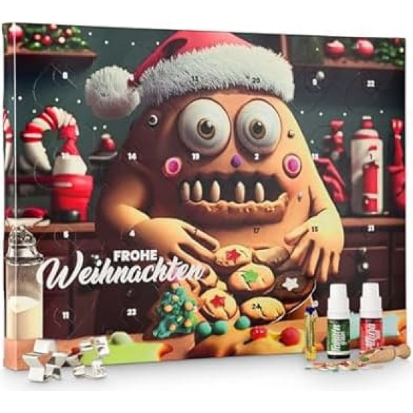 Kaffeehaus Diamant Monster Biscuit Baking Advent Calendar 2024, 140 g with 24 Doors Full of Baking Ingredients and Baking Accessories with Vanillin Sugar, Food Colourings, Sugar Sprinkles, Lemon Aroma