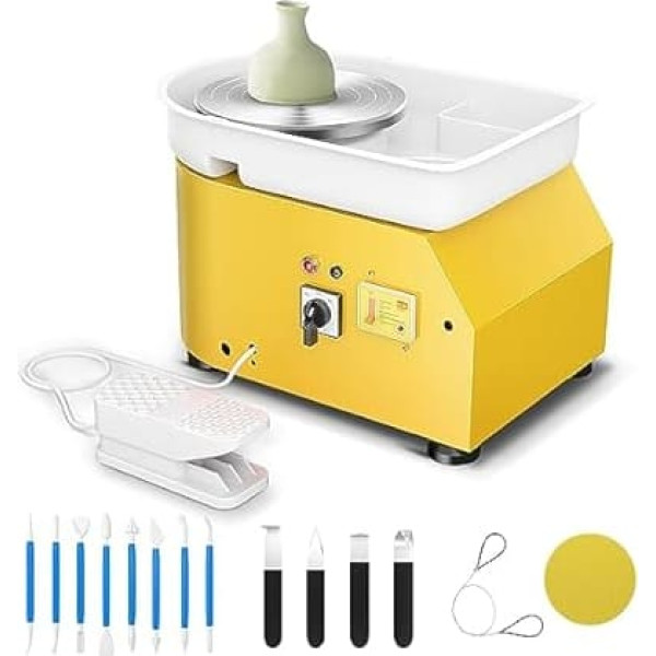 Flexible speed control: our electric pottery machine has two speed control modes: pedal and handle. You can control the speed with the pedal and free your hands to shape the desired shape. If you want your ceramic to be more sensitive, you can also regulate the speed of the turntable with the handle to make your artwork more perfect! Removable and washable water basin: This pottery machine has a removable mudguard basin that provides plenty of space for the water basin, so you don't have to worry about the pottery clay splashing other places when using. When you are finished using it, you can disassemble the water bowl directly, which makes cleaning and next use easier. High quality: this pottery motor uses a high-quality motor made of pure copper with high performance and low noise level. The power is up to 350W and the speed is adjustable from 0 to 300 rpm. And with leakage protection device, safe and reliable operation. Adjustable rotation direction: the direction of the turntable of this pottery machine can be switched clockwise or counterclockwise. You can adjust the rotation mode that suits you to your daily habits and thus achieve a better pottery experience! Complete pottery tools: the package contains a set of pottery tools. These pottery tools can be used to sculpt clay. They are suitable for children's pottery lessons, for pottery in the family, for pottery professionals and pottery lovers. Use this pottery machine to create your own works of art! › See more product details