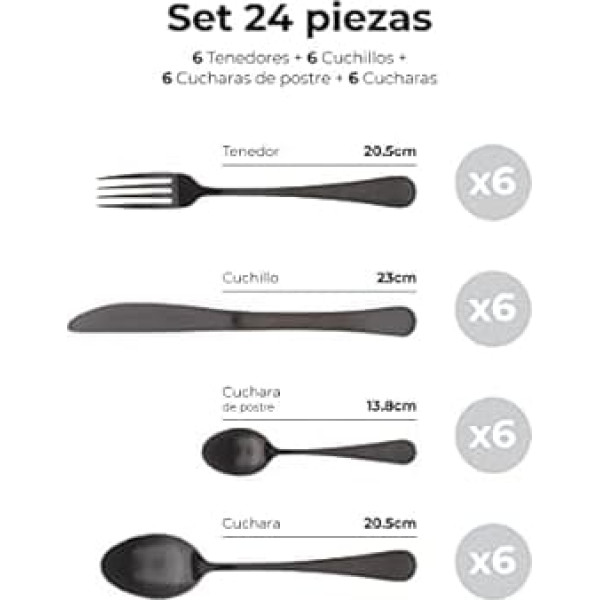 24-piece stainless steel cutlery set in black Consists of: 6 spoons - 6 forks 6 knives - 6 teaspoons › See more product details; Product description 24-piece stainless steel cutlery set in black. Consists of: - 6 spoons - 6 forks - 6 knives - 6 teaspoons; Product description 24-piece stainless steel cutlery set in black. Consists of: - 6 spoons - 6 forks - 6 knives - 6 teaspoons; 24-piece stainless steel cutlery set in black. Consists of: - 6 spoons - 6 forks - 6 knives - 6 teaspoons