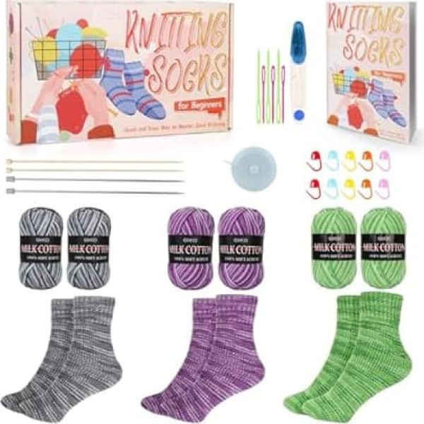 Knitting Kit for Beginners This knitting kit includes a book of sock patterns. The instruction book (English version) is designed to teach the basics of knitting without any prior knowledge. It is a carefully photograph-illustrated guide that guides you step by step through every technique, stitch and wrap, from slip knot to weaving in ends. Even without knitting experience, knitting is easy to learn. Easy to learn to knit with your families: considering that everyone likes to use knitting beginner sets made of different materials, the knitting beginner set comes with a selection of two single point knitting needles, made of metal and bamboo. Of course, you can also ask your family and friends to learn how to knit together, and strengthen your relationship while learning to knit. Knitting Needles for Socks: knitting starter kit for adults contains 2 each of 3 different coloured cotton yarn balls with colourful yarns and a super soft. When you learn to knit, you will be rewarded with 3 pairs of warm socks. Beginners can freely try their hand on knitting their own crafts, get practical socks when learning a new skill and you can share it with your family or send it to friends as a gift. Complete knitting kit for beginners included: you will receive 6 x premium quality socks yarn balls, 4 x knitting needles 25 cm, step by step instructions, yarn sewing needle, scissors, tape measure. Knitting set for beginners adults comes with everything you need to help you knit better and faster, make you get a complete and rewarding knitting experience. Good gift: it is a great your for wife, mother, grandma who like to make DIY crafts. You can also use these socks knitting kit to make beautiful handmade socks for your family as a Christmas birthday gift. An excellent choice for men, women, teenagers or even as a connecting parent-child activity! › See more product details; Product description Katech knitting for beginners set is an essential for any knitting lover and even a beautiful collector's item. Knitting needles for socks made of high-quality aluminium and bamboo, with a carefully crafted satin effect and a perfectly tapered tip that supports you in completing your latest artistic journey. With the exquisite knitting needles, crafts become a pleasure and knitting is loose and easy by hand. Features: --When you are learning knitting needles for the first time, the knitting sock sets are easier than the crochet animal set. With this knitting set, you can learn from easy to difficult needle play. --After the needle head has been polished by several processes, each needle set is manually modified, which is smoother than conventional knitting needles and glides better through the yarn. --Whether knitting a 1 pair of socks for you friends or send your knitting set, knitting starter kits with tutorial book, perfect as a Christmas gift, Thanksgiving gift, Valentine's Day gift, birthday gift and anniversary gift. --At the end of a busy and busy day, you want to relax, knitting kit with yarn will be a great DIY crafting project, it allows you to have fun and relax, but also develop to be a new hobby. Package contents: Katech 29 pieces. Knitting for beginners. Complete set for 3 pairs of socks. 1 x English step-by-step instructions. 6 x cotton for knitting and crocheting. 2 x 25 cm long knitting needles 3 mm made of metal. 2 x 25 cm long stocking needles 3 mm made of bamboo. 10 x stitch markers. 6 x sewing needles. 1 x tape measure. 1 x pair of scissors.; Product description Katech knitting for beginners set is an essential for any knitting lover and even a beautiful collector's item. Knitting needles for socks made of high-quality aluminium and bamboo, with a carefully crafted satin effect and a perfectly tapered tip that supports you in completing your latest artistic journey. With the exquisite knitting needles, crafts become a pleasure and knitting is loose and easy by hand. Features: --When you are learning knitting needles for the first time, the knitting sock sets are easier than the crochet animal set. With this knitting set, you can learn from easy to difficult needle play. --After the needle head has been polished by several processes, each needle set is manually modified, which is smoother than conventional knitting needles and glides better through the yarn. --Whether knitting a 1 pair of socks for you friends or send your knitting set, knitting starter kits with tutorial book, perfect as a Christmas gift, Thanksgiving gift, Valentine's Day gift, birthday gift and anniversary gift. --At the end of a busy and busy day, you want to relax, knitting kit with yarn will be a great DIY crafting project, it allows you to have fun and relax, but also develop to be a new hobby. Package contents: Katech 29 pieces. Knitting for beginners. Complete set for 3 pairs of socks. 1 x English step-by-step instructions. 6 x cotton for knitting and crocheting. 2 x 25 cm long knitting needles 3 mm made of metal. 2 x 25 cm long stocking needles 3 mm made of bamboo. 10 x stitch markers. 6 x sewing needles. 1 x tape measure. 1 x pair of scissors.; Katech knitting for beginners set is an essential for any knitting lover and even a beautiful collector's item. Knitting needles for socks made of high-quality aluminium and bamboo, with a carefully crafted satin effect and a perfectly tapered tip that supports you in completing your latest artistic journey. With the exquisite knitting needles, crafts become a pleasure and knitting is loose and easy by hand. Features: --When you are learning knitting needles for the first time, the knitting sock sets are easier than the crochet animal set. With this knitting set, you can learn from easy to difficult needle play. --After the needle head has been polished by several processes, each needle set is manually modified, which is smoother than conventional knitting needles and glides better through the yarn. --Whether knitting a 1 pair of socks for you friends or send your knitting s