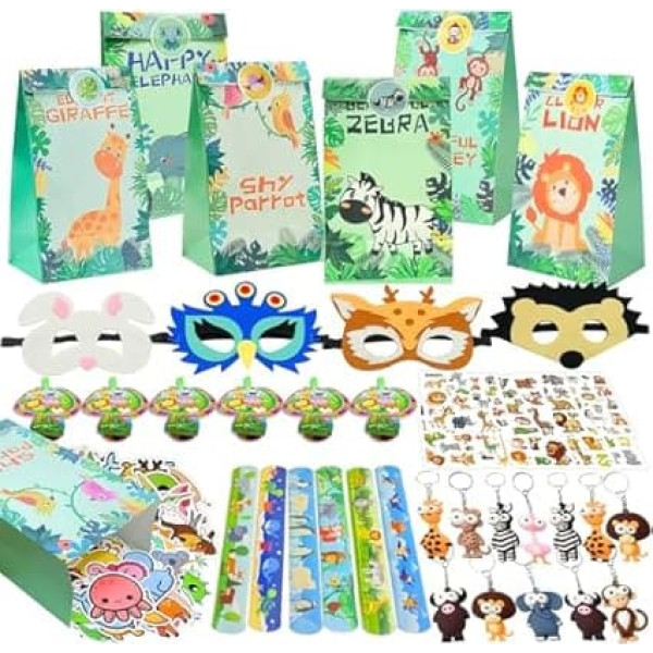 PQKL-party 140 Jungle Party Bag Set, Animal Party Bags, Jungle Party Bags, Animal Gift Bags, Keyrings, Masks, Stickers, Blowing Dragon, Party Bag Accessories