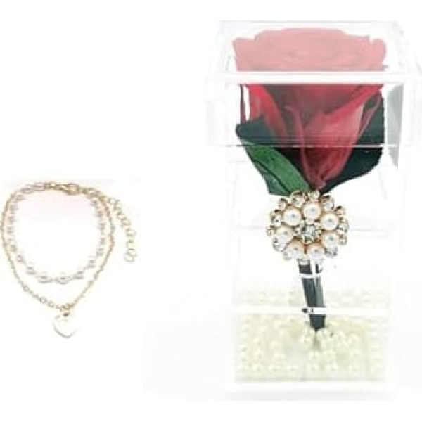 LUA STORE Preserved Red Rose in Gift Box - Eternal Rose with Bracelet - Perfect Romantic Gift for Birthday, Valentine's Day and Other Occasions