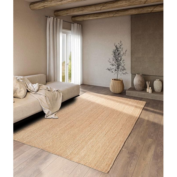 Villeroy & Boch Rosalie Jute Rug - Natural Living Room Rug Made of 100% Jute - Hand Woven & Environmentally Friendly - Boho Rug Jute for Living Room, Bedroom, Dining Room - Natural Gold, 160 x 230 cm