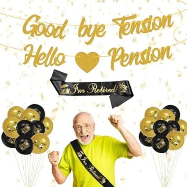 【Retirement Party Decoration Set】The retirement party decoration package includes 1 x retirement banner with the words \; Product description Product description Retirement Party Decorations, Goodbye Tension Hello Pension Banner, Retirement Balloons I'm Retired Sash, Happy Retirement Decor for Women Men Teacher Office Farewell Party Supplies Safety Warning No warning applicable; Product description Product description Retirement Party Decorations, Goodbye Tension Hello Pension Banner, Retirement Balloons I'm Retired Sash, Happy Retirement Decor for Women Men Teacher Office Farewell Party Supplies Safety Warning No warning applicable; Product description Retirement Party Decorations, Goodbye Tension Hello Pension Banner, Retirement Balloons I'm Retired Sash, Happy Retirement Decor for Women Men Teacher Office Farewell Party Supplies Safety Warning No warning applicable