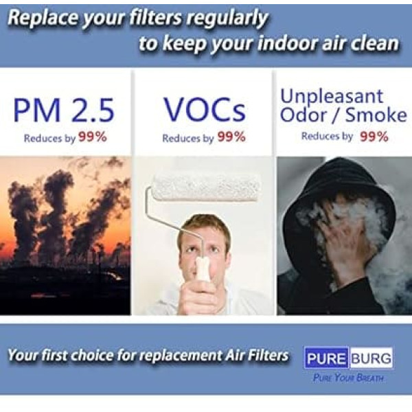 High Efficiency Replacement H13 True HEPA Filter Kit (1 True HEPA Filter + 1 Activated Carbon Filter + 4 Carbon Prefilters) Compatible with Beurer LR 500 and Purafide Air XP360 air purifier H13 True HEPA captures 99.97% of airborne dusts PM2.5 up to 0.3 microns in size. Removes large and airborne particles, including dust, common pollutants, activated carbon reduces chemicals, VOC, tobacco smoke, PM2.5, common bad household odor Please replace it regularly to keep your machine fresh and clean. For best results, remove the filter once a month and clean with a soft brush or gentle vacuum cleaner. Premium quality for maximum customer satisfaction guaranteed, change the PUREBURG replacement filter in minutes, no tools required; Note: please take the new filter out of the plastic bag before putting it in. › See more product details; Product description PUREBURG High Efficiency Replacement H13 True HEPA Filter Kit Compatible with Beurer LR 500 And Purafide Air XP360 Air Purifier, True HEPA, Activated Carbon Disclaimer This product is a generic product designed to replace the original part. All brand names or logos are the registered trademarks of their respective owners. Any use of a brand name or model designation for this product is made solely for purposes of demonstrating compatibility. PUREBURG - Pure Your Breath! We value your satisfaction. If you have any problems with our product, please contact us.; Product description PUREBURG High Efficiency Replacement H13 True HEPA Filter Kit Compatible with Beurer LR 500 And Purafide Air XP360 Air Purifier, True HEPA, Activated Carbon Disclaimer This product is a generic product designed to replace the original part. All brand names or logos are the registered trademarks of their respective owners. Any use of a brand name or model designation for this product is made solely for purposes of demonstrating compatibility. PUREBURG - Pure Your Breath! We value your satisfaction. If you have any problems with our product, please contact us.; PUREBURG High Efficiency Replacement H13 True HEPA Filter Kit Compatible with Beurer LR 500 And Purafide Air XP360 Air Purifier, True HEPA, Activated Carbon Disclaimer This product is a generic product designed to replace the original part. All brand names or logos are the registered trademarks of their respective owners. Any use of a brand name or model designation for this product is made solely for purposes of demonstrating compatibility. PUREBURG - Pure Your Breath! We value your satisfaction. If you have any problems with our product, please contact us.