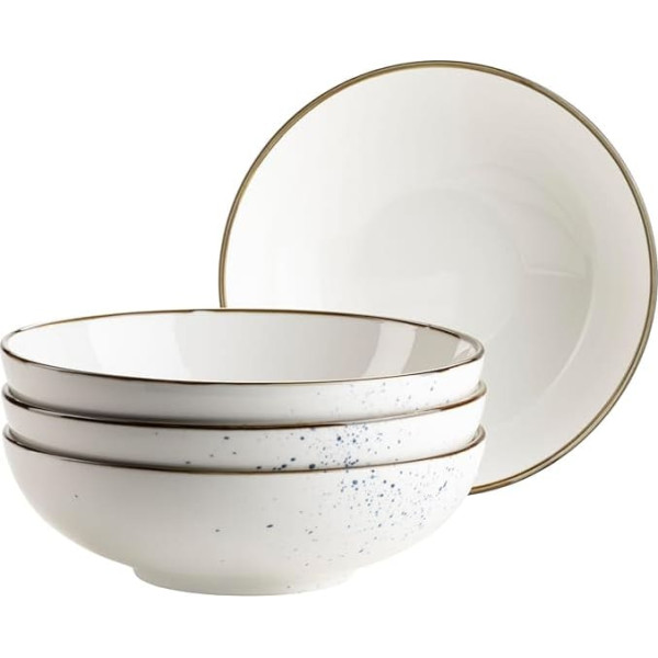 MÄSER Pintar Series High-Quality Bowl Set of 4 with Diameter 22 cm with Light Glaze, Visual Blue Speckles and Fine Edge in Vintage Handmade Look, Porcelain