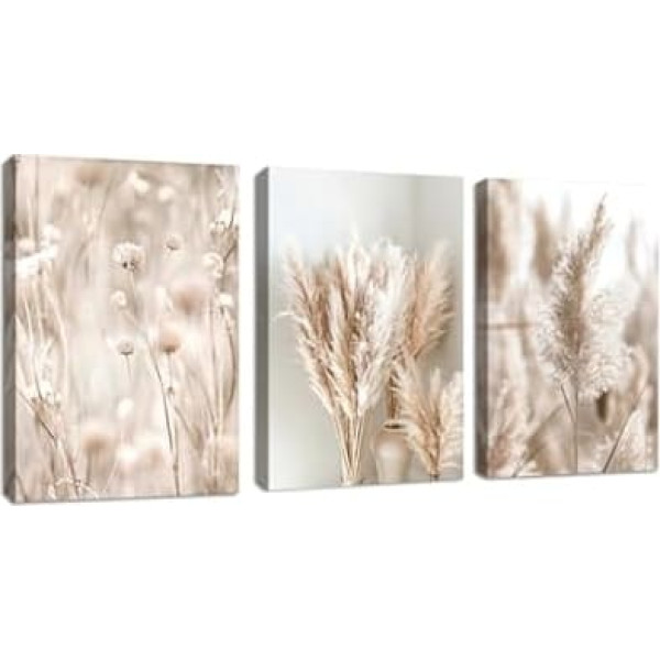 Wall picture size: 3-piece boho beige pampas grass pictures wall art with frame - approx. 90 x 40 cm (L x H) (30 x 40 30 x 40 30 x 40) (W x H) PREMIUM QUALITY Our abstract canvas wall art are crafted with high quality canvas material to ensure durability, printed with high quality inks to become a real eye catcher in your home. EASY TO HANG A high quality gallery wrapping technique that expands the picture around the wooden frame. Metal hanging hook is already attached to the frame and the large canvas wall art ready to hang. Ideal Choice: Perfect wall decorations for living room bedroom kitchen bathroom dining room or office hotel restaurant bar etc, it is also a great gift for your friends colleagues or partners on birthday, Valentine's Day, Christmas and New Year. SAFE PACKAGING Multi-layer packaging protection ensures safe transportation and delivery of the mural. If you have any questions, please contact us immediately, we will contact you within 25 hours! › See more product details