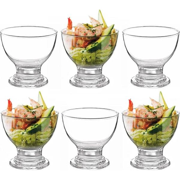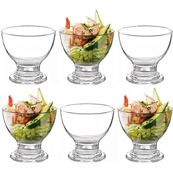 Set of 6 high quality glass bowls to display your sweet desserts. Ideal for serving ice cream, sundaes, fruit salad, appetizers, pudding and many other desserts. Size: 8.5 x 9 cm ELEGANT PRESENTATION - Uniquely styled dessert bowls ideal for presenting a range of desserts no matter the environment. A clean, modern glass structure with a stem base makes your dessert look classy and impress your guests. Ideal for parties, dinners, events and festive occasions. DURABLE GLASS STRUCTURE - Strong glass with a durable finish to keep these dessert bowls in clear condition even after numerous uses and repeated washing. With hygienic, non-porous and inere properties of glass, these bowls will keep your desserts always fresh, from eating to serving. SPACE SAVING STORAGE - In addition to the handy tool for serving delicious small foods and desserts, these dessert bowls are also easily stackable to ensure your cabinets stay neat and tidy. › See more product details