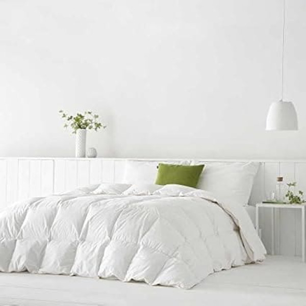 Filling: 98% goose down - 2% small feathers. Material: 100% Egyptian Cotton (Downproof treated to prevent down) Colour: white. Capacity: 250 g/m². Provides high heat insulation with very low weight Fill Power (recovery capability) 750/1000. Exclusive care: soft outer fabric, very good recovery ability, perfect fit to the body shape, lightness, volume, great heat output. The cushions pictured are not included. Particularly suitable for autumn and winter areas in cold areas, rooms with low thermal insulation or low heating. Empty cover the description of the work. Dimensions: bed 90 (150 x 220), bed 105 cm: 180 x 220), bed 135 cm (220 x 220), bed 150/160: (240 x 220), bed 180: 260 x 240), bed 200: (280 x 240 x 240 x 280 x 240 0) › See more product details
