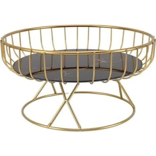 Round Fruit Basket, Golden Hollow Metal Fruit Bowl, Stand, Fruit Plate, Fruit Tray, Living Room, Reception, Serving Tray for Fruit, Dessert, Snacks, Bread (L Black Background