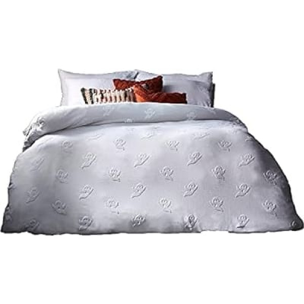 With some not-so-fearful tufter spirits Made from 100% cotton for an incredibly comfortable sleep. Clear button closure for easy bed removal Includes a matching cushion cover that measures 50 x 75 cm (20 x 30 inches). Cushion cover inserts should measure 50 x 75 cm (20 x 30 inches) or less. This duvet is machine washable at 40 degrees, low tumble dry and hot iron. › See more product details; Product description Stage! Add some spooky to your home with the ghostly tufted duvet. Made with 100% cotton and featuring a mini ghost tufting detail. Our tufted ghost bedding adds a creepy, textural look to your bedroom. Featuring a comfortable, breathable cotton percale backing to help you have a better night's sleep, this bedding feels as good as it looks.; Product description Stage! Add some spooky to your home with the ghostly tufted duvet. Made with 100% cotton and featuring a mini ghost tufting detail. Our tufted ghost bedding adds a creepy, textural look to your bedroom. Featuring a comfortable, breathable cotton percale backing to help you have a better night's sleep, this bedding feels as good as it looks.; Stage! Add some spooky to your home with the ghostly tufted duvet. Made with 100% cotton and featuring a mini ghost tufting detail. Our tufted ghost bedding adds a creepy, textural look to your bedroom. Featuring a comfortable, breathable cotton percale backing to help you have a better night's sleep, this bedding feels as good as it looks.