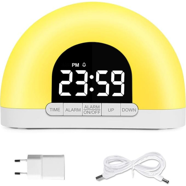 A range of alarm clocks + 9 minutes snooze function: the alarm clock can set a number of alarm clocks, and at the bottom of the alarm clock there is a snooze button. When the alarm clock rings, press the alarm clock with your hand to trigger the snooze function and get a 9-minute lunch nap. Wake up light alarm clock: 30 minutes before the alarm clock rings, the alarm clock is automatically triggered with a light that simulates the sunrise. The light will darken from 1-30 brightness. The gentle light and sound of the alarm clock will make you wake up every morning. Wake up comfortably. Alarm clock with night light: the alarm clock has a night light (warm light), which can be adjusted to 30 brightness levels, which can bring warmth and gentle light to the bedroom. Night lights can also help parents with breastfeeding and diaper changes as well as young children reading aloud before bedtime. How to use the alarm clock: alarm clock is equipped with a data cable, an adapter, an instruction manual and packaging. The alarm clock must be connected to a power source for use and can be used by connecting the adapter to a data cable and connecting to the power source. If you insert batteries (not included) into the battery compartment on the back of the alarm clock, you can trigger the time memory function of the alarm clock. Perfect gift: The exquisite and compact appearance combined with the simple and easy to use alarm clock function allows users to easily get started and brings comfort to the night environment. It is an ideal gift choice for Christmas/Halloween/Easter/Mother's Day/children who come to school. › See more product details