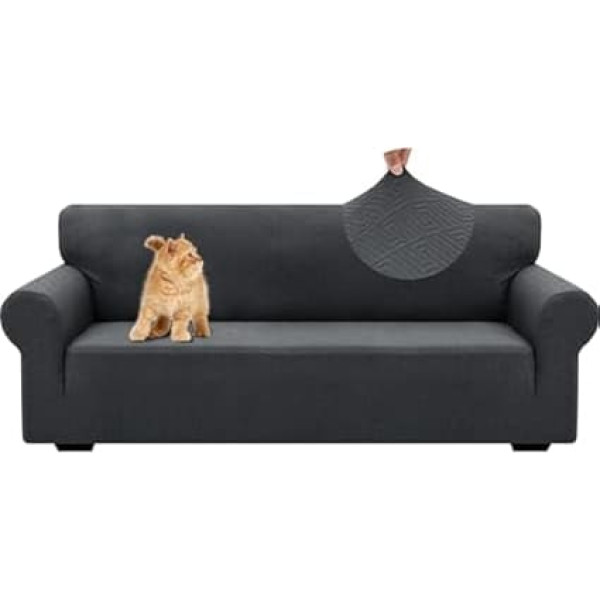 YSTELLAA Stretch Sofa Cover 3 Seater, Sofa Protector Non-Slip with Armrest, Universal Jacquard Sofa Cover, Thick Sofa Cover for Dogs, Cats and Pets, Washable Sofa Cover, Dark Grey