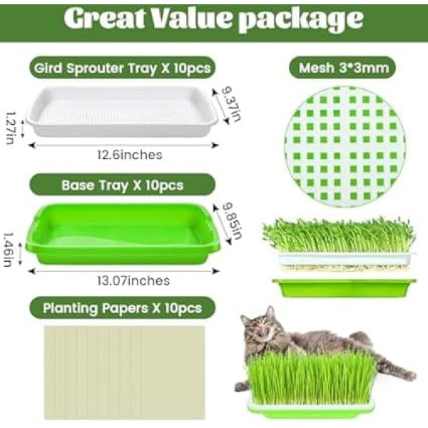 Legigo Pack of 10 Green Seed Sprout Bowls - Soil Free Propagation Germination Tray, BPA-Free Nursery Tray with Planting Paper for Indoor or Outdoor, Germination Seeds, Growing Grass, Beans and More