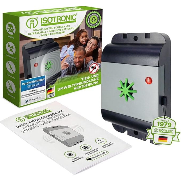 Isotronic Mouse/Rat Ultrasonic Repellent, Electronic Pest Repellent for Home, Cellar, Garden, Mice and Rats Are Expelled Without Chemicals and Mouse Traps