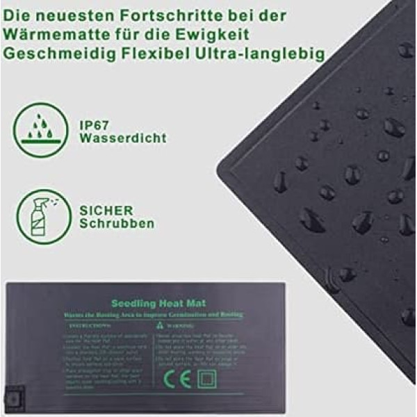 Versatile use: heating mat plants increases the success of cuttings: optimise your plant propagation from cuttings for all your flower, vegetable and herb needs. Ideal for greenhouses, nurseries and indoor gardens Stable heating system – the heating mat plant can heat the root area to 10-20F above room temperature and provides even radiant heat for cuttings. Waterproof design and super easy to clean Durable Materials - Heating mat for plants is the stronger heating wire and thicker multi-layer construction, durable waterproof material to ensure a safe growing environment Energy-saving – This 10 x 20.75 inch seedling heating mat is perfect for standard 1020 trays. It also runs at only 18 watts to help you save energy. Specifications – temperature control range is 68-108F; mat dimensions: 10 x 20.75 inches. Watt: 18 watts. Cable length: 6 feet › See more product details