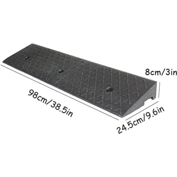 INDUSTRIAL GRADE RUBBER Made of high quality rubber material, the curb ramp is pressure-resistant, non-slip, and has the strong bearing capacity. Non-slip Texture The surface is non-slip, which increases friction and prevents slipping. Non-slip, safe and reliable. Pre-shaped holes: The threshold ramp kit for outdoor use can be permanently installed in high traffic areas using the built-in mounting holes at the bottom of each ramp. Function: This rubber ramp can be placed on threshold or curb to eliminate the obstacle of step height difference, Widely Application Suitable for supermarkets, factories, warehouses, schools, etc. Can accommodate various forklifts, trucks, buses, excavators, off-road vehicles and others. › See more product details; Product description Features: curb ramp set Robust and robust design. Angled profile rails. Marine Grade Waterproof Construction Textured surface for increased friction/traction Used for uneven curbs, driveways, garages, walkways Hardware screws not included, can be purchased at hardware store Package includes: 2 x Vehicle Ramps Technical data: Color: Black Construction material: molded industrial composite plastic Size (L x W x H): 98 x 24.5 x 8 cm. Please allow 1-3 cm difference due to manual measurement. Due to the shooting angle or light, the colour of the product may have a slight colour difference within the normal range.; Product description Features: curb ramp set Robust and robust design. Angled profile rails. Marine Grade Waterproof Construction Textured surface for increased friction/traction Used for uneven curbs, driveways, garages, walkways Hardware screws not included, can be purchased at hardware store Package includes: 2 x Vehicle Ramps Technical data: Color: Black Construction material: molded industrial composite plastic Size (L x W x H): 98 x 24.5 x 8 cm. Please allow 1-3 cm difference due to manual measurement. Due to the shooting angle or light, the colour of the product may have a slight colour difference within the normal range.; Features: curb ramp set Robust and robust design. Angled profile rails. Marine Grade Waterproof Construction Textured surface for increased friction/traction Used for uneven curbs, driveways, garages, walkways Hardware screws not included, can be purchased at hardware store Package includes: 2 x Vehicle Ramps Technical data: Color: Black Construction material: molded industrial composite plastic Size (L x W x H): 98 x 24.5 x 8 cm. Please allow 1-3 cm difference due to manual measurement. Due to the shooting angle or light, the colour of the product may have a slight colour difference within the normal range.