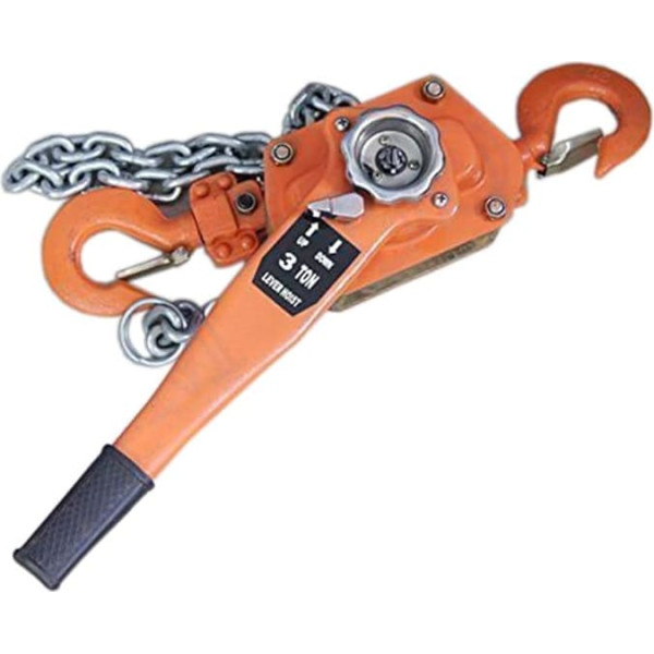 High-quality carbon steel body with strong hardness, impact resistance and antioxidation. Stainless steel hand chain has strong corrosion and wear resistance. 1.5T lifting capacity and 1.5m long chain with 5mm diameter, the chain has enough strong tension and intensity to cause deformation. The premium brake ensures your safety during operation and the non-slip ergonomic handle makes it easier to operate this lever chain hoist. The secure hook with safety latch and can be rotated 360° without restriction, easy to use. Please note the most important photo is only the actual 1.5 tone. › See more product details; Product description Specifications: Chain material: alloy steel 20Mn2. Hook: steel. Gear: carbon steel. Cover: Cold Rolled Steel Max. Lifting height: 1.5 m (5 feet) Distance between hooks: 14-3/8 inches. Chain diameter: 5 mm. Chain length: 1.5 m / 5 ft. Length of lever handle: 16 inches. Lifting capacity: 1.5 tonnes/3300 lbs. Features: Simple structure, small size and light weight. Two swivel hooks and 1.5 t Easy to use handle 1.5 m sturdy chain. Reliable braking system. Widely used in transportation, construction and other areas for installing machinery, lifting goods and hauling bags. Also ideal for mobile use in workshops, garages, factories etc.; Product description Specifications: Chain material: alloy steel 20Mn2. Hook: steel. Gear: carbon steel. Cover: Cold Rolled Steel Max. Lifting height: 1.5 m (5 feet) Distance between hooks: 14-3/8 inches. Chain diameter: 5 mm. Chain length: 1.5 m / 5 ft. Length of lever handle: 16 inches. Lifting capacity: 1.5 tonnes/3300 lbs. Features: Simple structure, small size and light weight. Two swivel hooks and 1.5 t Easy to use handle 1.5 m sturdy chain. Reliable braking system. Widely used in transportation, construction and other areas for installing machinery, lifting goods and hauling bags. Also ideal for mobile use in workshops, garages, factories etc.; Specifications: Chain material: alloy steel 20Mn2. Hook: steel. Gear: carbon steel. Cover: Cold Rolled Steel Max. Lifting height: 1.5 m (5 feet) Distance between hooks: 14-3/8 inches. Chain diameter: 5 mm. Chain length: 1.5 m / 5 ft. Length of lever handle: 16 inches. Lifting capacity: 1.5 tonnes/3300 lbs. Features: Simple structure, small size and light weight. Two swivel hooks and 1.5 t Easy to use handle 1.5 m sturdy chain. Reliable braking system. Widely used in transportation, construction and other areas for installing machinery, lifting goods and hauling bags. Also ideal for mobile use in workshops, garages, factories etc.