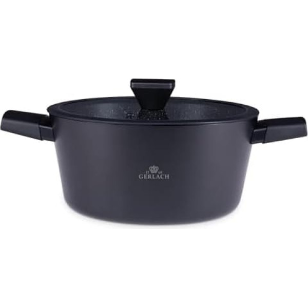 Gerlach Granitex Ceramic Coated Saucepan Suitable for Induction Cookers for Electric Gas Ceramic Induction Hob Pans Pots Black 24 cm 4.4 L