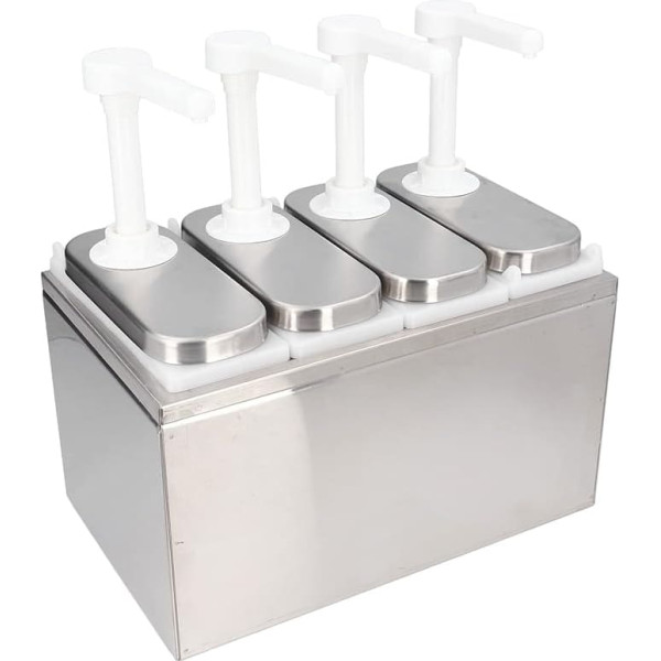 What you get: 1 x base - 3 / 4 / 5 x ketchup dispensers. Material: sauce dispenser made of high-quality stainless steel, which is safe, odourless, corrosion and rust resistant. Function: Each ketchup dispenser has a capacity of 1 litre, which can hold a sufficient amount of sauce at once, avoiding repeated filling and a good seal. Widely used: The sauce dispenser is designed for seasoning and is ideal for ketchup, salad dressing, soy sauce, vinegar, salad dressing, mayonnaise and more. Easy to use: the quantitative dosing dispenser can be rotated in all directions, the print head has a built-in spring, the tank is removable, easy to clean. › See more product details; Product description Specification: Item Type:Sauce Dispenser Pump Product material: plastic + stainless steel. Capacity: 3L, 4L, 5L (optional). Capacity of a single pump bottle: 1 L. Package list: 1 x base. 4 x dosing pumps. or 1 x base. 5 x sauce dispensers. or 1 x base. 3 x sauce dispensers.; Product description Specification: Item Type:Sauce Dispenser Pump Product material: plastic + stainless steel. Capacity: 3L, 4L, 5L (optional). Capacity of a single pump bottle: 1 L. Package list: 1 x base. 4 x dosing pumps. or 1 x base. 5 x sauce dispensers. or 1 x base. 3 x sauce dispensers.; Specification: Item Type:Sauce Dispenser Pump Product material: plastic + stainless steel. Capacity: 3L, 4L, 5L (optional). Capacity of a single pump bottle: 1 L. Package list: 1 x base. 4 x dosing pumps. or 1 x base. 5 x sauce dispensers. or 1 x base. 3 x sauce dispensers.