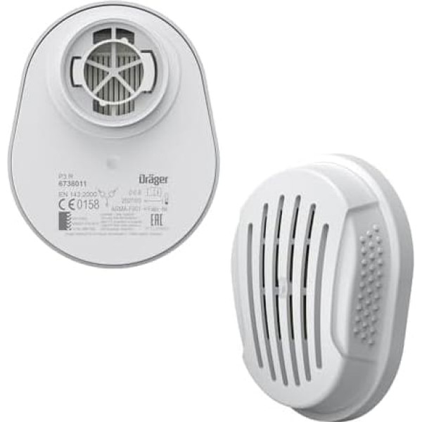 INNOVATIVE DESIGN The Dräger filters have an optional pre-filter that prevents degradation caused by particles and coarse dust, thus extending their life Maximum comfort: Dräger filters offer a better wearing comfort as they can be easily inserted into the breathing mask and allow a wider view Professional safety: safe breathing against toxic gases, organic and inorganic fumes, sulphur dioxide, hydrochloric acid, ammonia, mercury vapors and particles Areas of application: protects against toxic gases, organic and inorganic vapours, sulphur dioxide, hydrochloric acid, ammonia, particles and mercury vapours CERTIFIED SAFETY The respirators are used with double filters that have a service life of up to 6 years, in addition with CE approval and EN certificates › See more product details