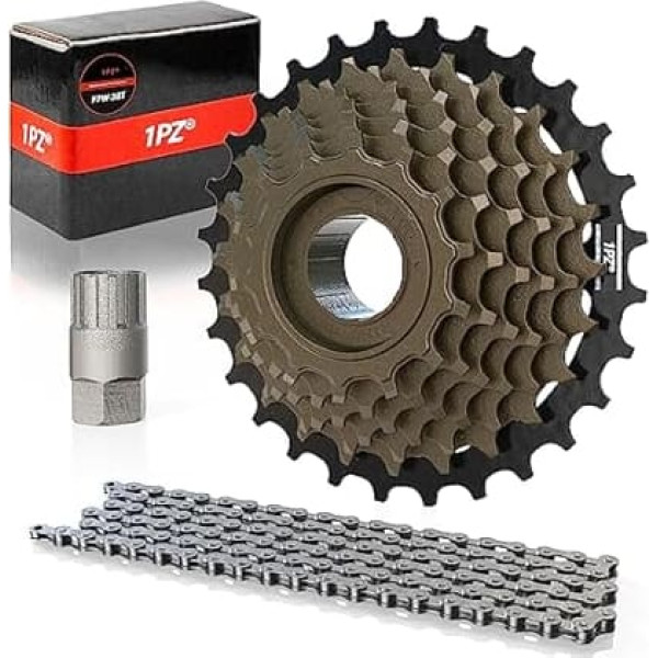 Compatible: mountain bikes, hybrid bikes, sports bikes, children's bikes and all standard bikes. Easy installation: the 7-speed freewheel is simply screwed into the hub, easy to install and use. Easy to use: the freewheel repair tool for bicycle removal uses any 1/2 inch ratchet or 21 mm adjustable wrench to turn the tool (fork wrench, wrench, etc.) PACKAGE INCLUDES 1 x 7 Speed Freewheel, 1 x 7 Speed Chain, 1 x Freewheel Repair Tool in a branded box. 1PZ. › See more product details
