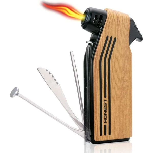 This pipe lighter has 3 foldable whistle devices, including a tamper, scraper and picking stick. These devices can easily remove soot and residue and clean your pipe well after use. It is perfect for serious pipe lovers. Antique and classic appearance is made of high-quality zinc alloy and leather. You can't keep your fingers off the soft touch leather body. Comes with an exquisite gift box, perfect to be a shop, Christmas, Halloween, birthday gift. Our tube lighter can produce a 45 degree angled soft flame directed for precise tube lighting. The temperature of the flame is approx. 930 °F, can toast slowly without burning your thumb. Please note that the lighter with soft flame is not windproof. This tube lighter is refilled with butane gas and equipped with an electronic ignition. Save the trouble of changing flints or wicks halfway. Flame adjustment switch at the bottom, choose a suitable screwdriver to turn the bottom of the flame adjustment lever, turn it clockwise or against the counter to lift and decrease the flame length. Our lighter is made of heavy-duty zinc alloy + ABS. This tube lighter is small (size: 3.2 inches x 1.4 inches x 0.5 inches / weight: 68 g), which is easy to carry in your pocket. › See more product details