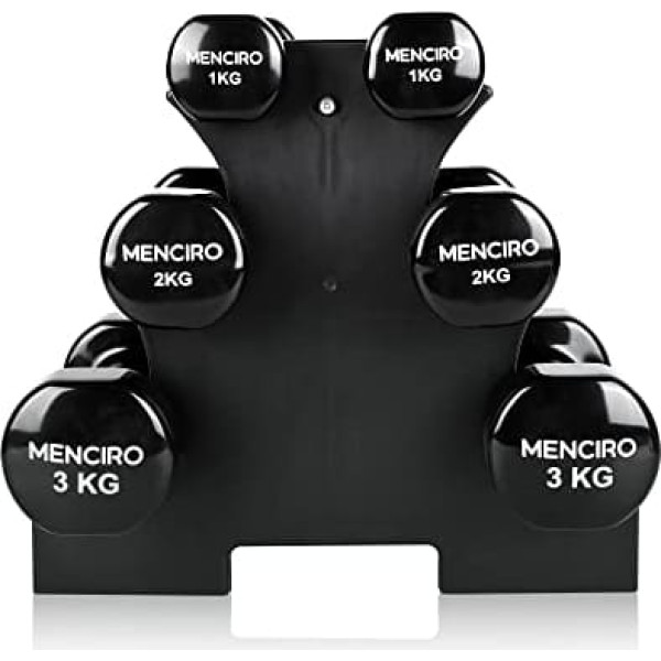 Multiple sizes available: our dumbbell sets include weights of 2 x 1 kg, 2 x 2 kg, 2 x 3 kg, which are suitable for both women and men beginners, so you can adjust your training to your individual fitness needs. Robust and durable design: this dumbbell set is made of robust cast iron and has an ergonomic design with a comfortable handle that allows a long service life and is ideal for strength training. Non-slip and anti-roll: this dumbbell set offers a quiet and safe training experience with its noise-absorbing and easy to clean rubber coating. And the top and bottom levels allow the dumbbells to be easily placed and prevent them from rolling back and forth. Compact and portable: this dumbbell set is a perfect addition to the home gym due to its compact size, so you can do a full body workout at any time if you want. And thanks to its space-saving function, it can be easily carried outside. Multiple use: this dumbbell set is specially designed for strength training and muscle building such as biceps and triceps. You can perform over 40 movements with the dumbbell, including single-arm rowing, dumbbell flying, and bench presses, etc. › See more product details