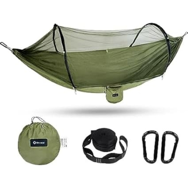 BTRWOR Hammock, Outdoor Hammock with Mosquito Net, Nylon Camping Travel Hammock, 300 kg Load Capacity, 260 x 140 cm, Camping Accessories for Outdoor, Indoor with Tree Straps (Olive)