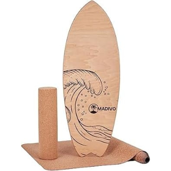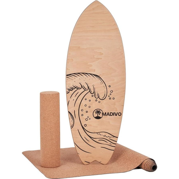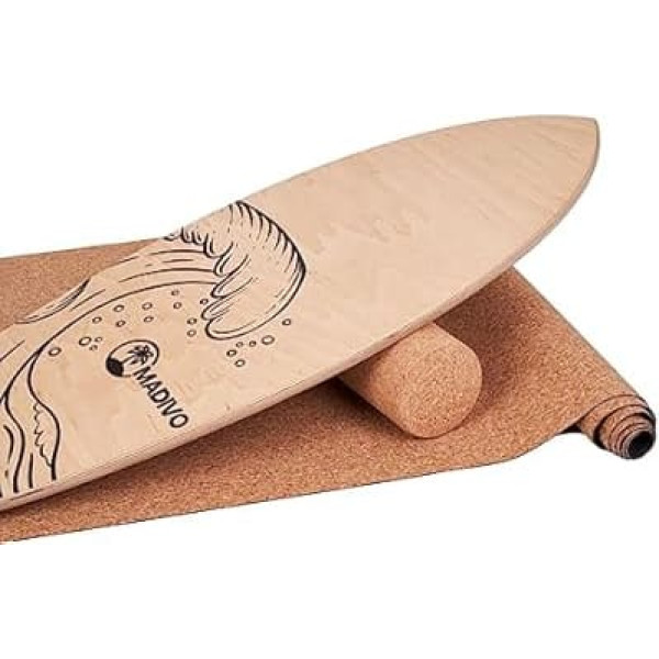 Ready to start immediately – all the most important elements are included to start your training immediately. The set consists of a high-quality wooden balance boards, a fitness mat and a cork roller High safety – the high-quality materials ensure a high durability of the product. In addition, the included sports mat provides a suitable surface to perform your exercises in safety Sustainable material – the surfboard is made of real wood, while the fitness roller and the mat are made of cork material. By purchasing this product, you can not only achieve something for yourself, but also for the environment Universal training – with the balance board from MADIVO you can perform numerous exercises. The board is suitable for balance training, coordination training, concentration training as well as for strengthening different muscle groups Other features: dimensions of the balance board: 88 x 32 x 2 cm, dimensions of the cork roll: 45 x 10 cm, dimensions of the cork mat: 183 x 61 x 0.2 cm, set 3-in-1 with accessories, ideal as a gift, real wood, board handmade › See more product details