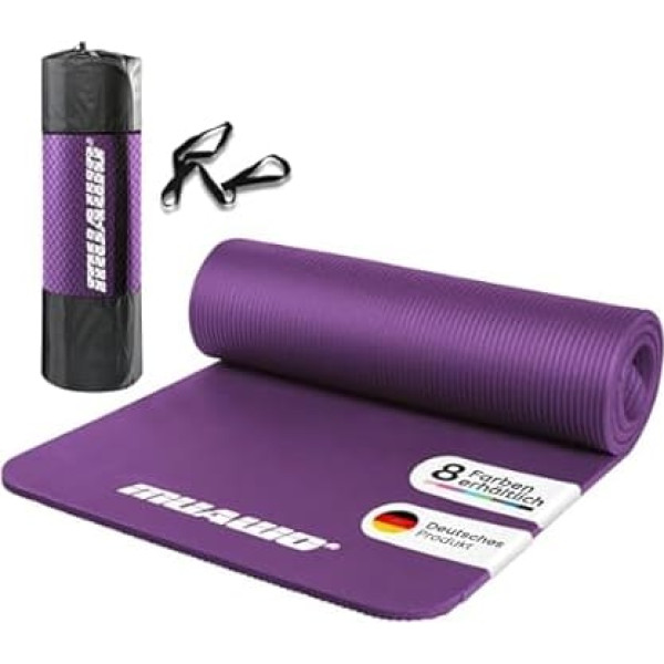 Very odour-neutral: Muawo fitness mats are exposed to a special process during production, so that the mats have virtually no chemical vapours. Product features: The yoga mat is available in two sizes and many colours; lightweight and high-quality synthetic rubber, water-repellent, non-slip, durable and more grip and comfort due to the thickness and soft surface of the sports mat, just as easy to handle and stow away by rolling up with practical rubber carrying strap and bag. Health and environment: Phthalate-free, 100% recyclable material, free from heavy metals and other harmful substances, skin-friendly, gentle on the joints. Wide range of uses: Due to the soft, thick and durable material, the fitness mat offers optimal support and comfort for both back, standing and jumping exercises; suitable as a yoga mat, Pilates mat, gym mat or sports mat for rehabilitation exercises, pregnancy gymnastics, for gymnastics, both indoor sports or outdoor activities (for example, as a sleeping mat when camping). Perfect gift for friends and family: Suitable for beginners, advanced or professionals - for at home, in the gym, sports hall or on the go, from camping to yoga, Pilates or HIIT workouts. Easy care: Easy cleaning of the fitness mat with a damp cloth or a soft brush; allow to dry in damp or wet condition; please avoid sunlight, extreme temperatures and shoes with pronounced profiles. German product: Designed and developed in Germany. - - › See more product details