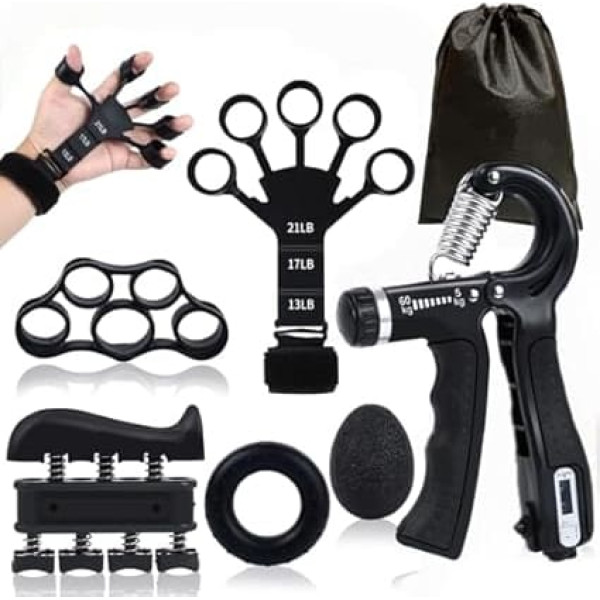 GOORFAC 's store name is Seven's Orange Approx. Please confirm our shop before placing an order!! Grip trainer set: grip trainer set includes: 1 adjustable handle trainer, 2 finger training equipment, 1 finger stretcher with wrist band, 1 grip rings and 1 stress relief grip ball. This hand strength trainer, grip strength trainer, wrist trainer work together, train the strength and flexibility of the hands, fingers, wrists, elbows and forearms and relax the hand muscles. Hand trainer with counting function: our hand strength trainer has a built-in counter that records how much movement you make during each exercise. Press and turn the reset button to track your physical training progress. The trainer can also adjust the resistance (5-60 kg) according to your strength. High-quality materials, easy to carry: thanks to the use of high-quality soft materials, the hand trainer sits comfortably in the hand and is very suitable for men and women of different thicknesses. And it has a textured surface that is firmly grippy and offers the best comfort. Our set comes with a portable storage bag, you can use your hand gripper anytime and anywhere, whether at home, in the gym, in the office or when travelling outdoors. Super useful! Muscle exercise and rehabilitation of injuries: the hand trainer finger trainer is not only very suitable for strengthening forearm muscles, finger flexibility and wrist stability, but also very good for rehabilitation training of finger, hand and wrist injuries, tendonitis and arthritis. It is a great rehabilitation tool. High-quality customer service: We attach great importance to the shopping experience of our customers. If you have any questions about the product, you can visit our customer service at any time, contact our 24/7 customer service, and we will provide you with any help you need. › See more product details
