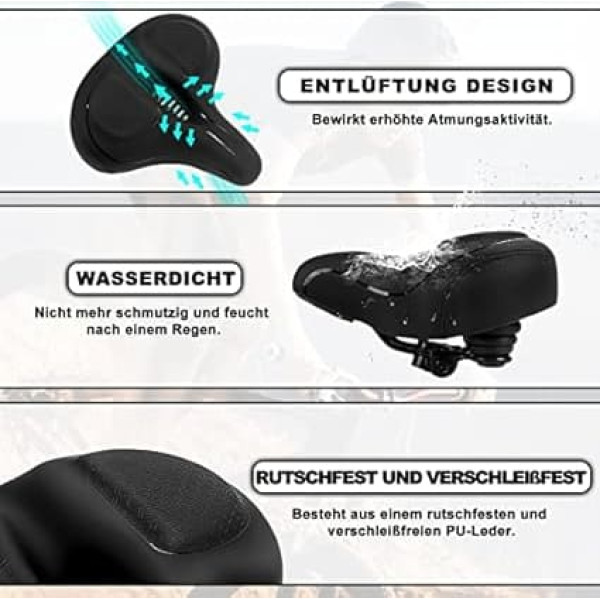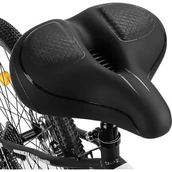 COMFORTABLE BIKE SADDLE Tonbux bike seats for men and women comfort make your workout longer. High density foam padding improves softness and support, shapes smooth for optimal fit and even pressure distribution. The widened design helps relieve the pressure on the back to keep you comfortable and healthy when riding. Breathable & Waterproof Saddle: the surface of our bike seat cushion is made of non-slip leather, which is waterproof, wear-resistant and scratch-resistant. The vents in the middle absorb blood flow to the buttocks and accelerate airflow and heat dissipation, keeping your buttocks cool and dry. Enjoy longer rides. Double shock absorption balls provide shock absorption on bumps, potholes or rough terrain. The more stable and powerful shock absorption provides better protection for your ride. Just enjoy your healthy and happy long rides Ergonomic design bicycle saddle: long soft nose with nature and comfortable transition to the back allows the thighs to move freely and relieve wear and pain on the legs when riding. A large bicycle seat replacement for an exercise bike UNIVERSAL FIT Our padded bike seats feature a universal clamp adapter, fits most standard seat posts, great bike accessories for indoor, outdoor peloton bike, or exercise bike/road/cruiser/mountain bikes. Comes with mounting tool, easy to attach to your bike in 1 minute. › See more product details