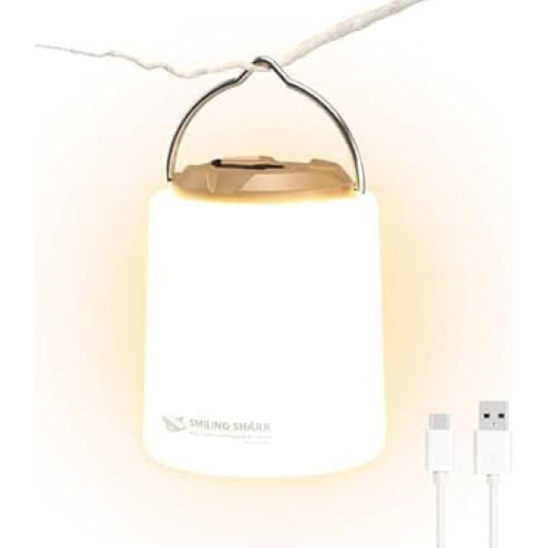 Bright and versatile: the camping lamp provides powerful lighting with 3 brightness settings high → low → strobe, which ensures excellent visibility during your outdoor adventures. ✔【Camping without load】Super mini portable and lightweight, designed for easy transport, this camping lamp is compact and lightweight, making it perfect for backpacking, hiking and camping trips. Long-lasting battery life and quick charging: equipped with a high capacity battery, up to 10 hours operating time. Enough for an overnight camping trip. Can also be charged from any power source, quickly and fully charged in just one hour! Durable and waterproof: thanks to the use of robust materials and the waterproof class IPX4, this camping lamp is suitable for outdoor use and offers reliable performance even in rain or snow. Emergency situation: The SOS storbe mode provides a useful emergency signal that ensures that you can attract attention and stay safe in unexpected situations. › See more product details; Product description Smiling Shark Camping Lantern, Camp Lamp, Mini Light, Warm, Rechargeable & Portable, Brightness Adjustable, 3 Modes, Tent Lamp for Adults & Children, Fishing, Emergencies, Garden; Product description Smiling Shark Camping Lantern, Camp Lamp, Mini Light, Warm, Rechargeable & Portable, Brightness Adjustable, 3 Modes, Tent Lamp for Adults & Children, Fishing, Emergencies, Garden; Smiling Shark Camping Lantern, Camp Lamp, Mini Light, Warm, Rechargeable & Portable, Brightness Adjustable, 3 Modes, Tent Lamp for Adults & Children, Fishing, Emergencies, Garden