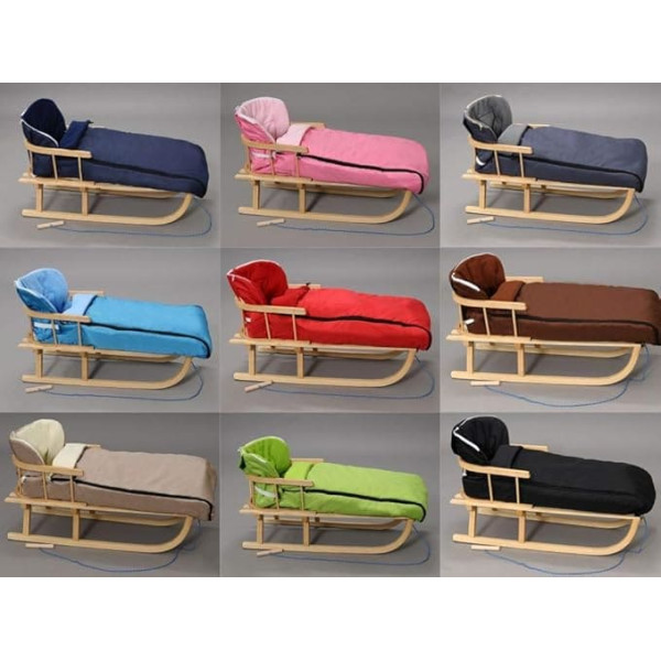 Wooden Sledge with Back Rest with Winter Footmuff 108 cm Sleigh with 10 Colours