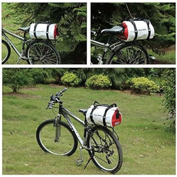 Bike bag with 18L capacity, strap around the bag to quickly put on or take off the bike, compact and practical, or can also be used as a handheld, shoulder or bundle elsewhere All around reflective design for better visibility to ensure personal safety on night driving ROLL STRUCTURE The entrance of the bag uses the roll top closure structure and welded seams, IPX6 waterproof even in heavy rain High quality accessories: thick and dense webbing, POM buckle, ensures a long service life High strength design: main material is PVC coating process (thickness of coating materials is better than ordinary laminating process and will not peel off), material resistant to low temperature, middle layer with 500D 18x23 high density polyester yarn, resistant to puncture › See more product details; Product description A waterproof bag that can be quickly disassembled and installed on the bike rack, can be used for a long time to prevent rain, can be filled with water, capacity 18L, size: 40 cm length, 23.8 cm width, 23 cm height (after three wheels at the opening of the bag), with shoulder straps, can be tied to the bicycle carrier by four straps, in addition to bicycles, can also be used as an ordinary travel bag, compact and practical.; Product description A waterproof bag that can be quickly disassembled and installed on the bike rack, can be used for a long time to prevent rain, can be filled with water, capacity 18L, size: 40 cm length, 23.8 cm width, 23 cm height (after three wheels at the opening of the bag), with shoulder straps, can be tied to the bicycle carrier by four straps, in addition to bicycles, can also be used as an ordinary travel bag, compact and practical.; A waterproof bag that can be quickly disassembled and installed on the bike rack, can be used for a long time to prevent rain, can be filled with water, capacity 18L, size: 40 cm length, 23.8 cm width, 23 cm height (after three wheels at the opening of the bag), with shoulder straps, can be tied to the bicycle carrier by four straps, in addition to bicycles, can also be used as an ordinary travel bag, compact and practical.