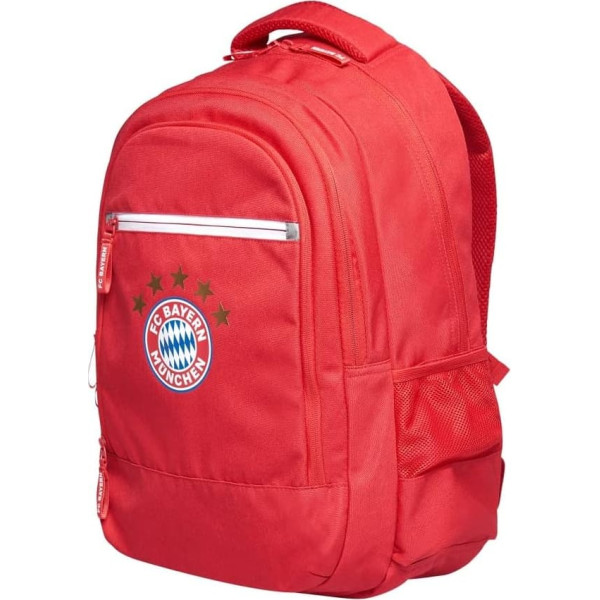 School backpack Motif: FC Bayern München logo with 5 stars Colour: red Size: approx. 47 x 33 x 5 cm Capacity: 20 litres › See more product details; Product description With the FC Bayern München school backpack, you can spray over all the right team spirit. The backpack in red with a large FCB logo with 5-star crown impresses with a large main compartment for your important things and several pockets for all your belongings. The padded and adjustable shoulder straps ensure the perfect fit. School backpack. With large main compartment. Padded inner pocket. Zip front pocket. 2nd front pocket with organiser. Zip pocket on the front. 2 side mesh pockets, air flow back. Padded and adjustable shoulder straps. Adjustable chest strap with buckle. Reflective material on the front. Side and on the carrying straps. Zip with FC Bayern lettering. Made from recyclable PET material. Size: 5 x 33 x 47 cm. Capacity: 20 litres. Colour: red. Material: 100% polyester.; Product description With the FC Bayern München school backpack, you can spray over all the right team spirit. The backpack in red with a large FCB logo with 5-star crown impresses with a large main compartment for your important things and several pockets for all your belongings. The padded and adjustable shoulder straps ensure the perfect fit. School backpack. With large main compartment. Padded inner pocket. Zip front pocket. 2nd front pocket with organiser. Zip pocket on the front. 2 side mesh pockets, air flow back. Padded and adjustable shoulder straps. Adjustable chest strap with buckle. Reflective material on the front. Side and on the carrying straps. Zip with FC Bayern lettering. Made from recyclable PET material. Size: 5 x 33 x 47 cm. Capacity: 20 litres. Colour: red. Material: 100% polyester.; With the FC Bayern München school backpack, you can spray over all the right team spirit. The backpack in red with a large FCB logo with 5-star crown impresses with a large main compartment for your important things and several pockets for all your belongings. The padded and adjustable shoulder straps ensure the perfect fit. School backpack. With large main compartment. Padded inner pocket. Zip front pocket. 2nd front pocket with organiser. Zip pocket on the front. 2 side mesh pockets, air flow back. Padded and adjustable shoulder straps. Adjustable chest strap with buckle. Reflective material on the front. Side and on the carrying straps. Zip with FC Bayern lettering. Made from recyclable PET material. Size: 5 x 33 x 47 cm. Capacity: 20 litres. Colour: red. Material: 100% polyester.